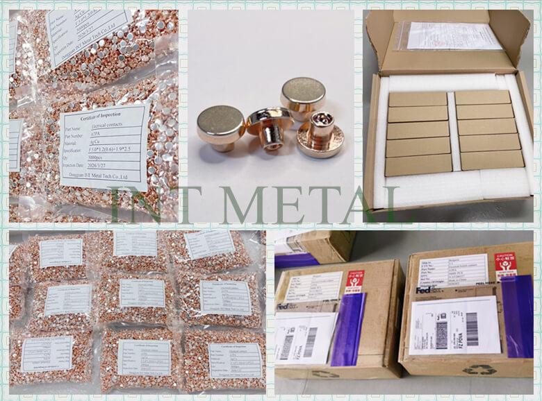 DONGGUAN INT METAL TECH CO LTDadota o processo de compósito de prensagem a frio (cabeçalho a frio), que combina prata ou liga de prata com cobre no estado sólido através de uma tremenda pressão. Este processo garante uma espessura uniforme da camada de prata e uma resistência de ligação extremamente elevada, o contatos de prataproduzido porMETAL INTERNOpode garantir a confiabilidade vitalícia dos produtos do cliente.